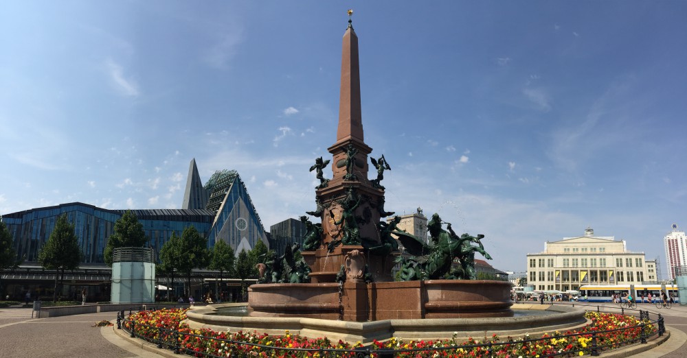 ライプツィヒ中央、アウグストゥス広場の中心にあるメンデ井戸