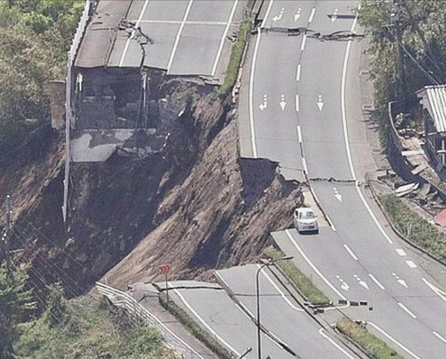 Ein vom Beben im April 2016 zerstörter Autobahnabschnitt.Kumamoto Erdbeben April 2016